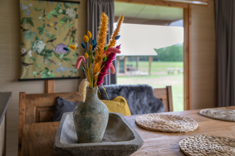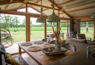 En la granja se encuentran estos lodges de lujo en medio del prado. En los lodges cómodos y espaciosos puedes disfrutar de la vida rural y del campo. Gracias a las numerosas ventanas y la gran puerta corredera en la parte delantera de los lodges, experimentarás plenamente la vida al aire libre.