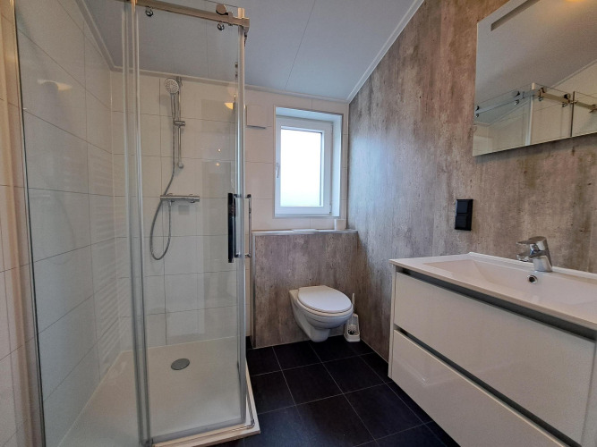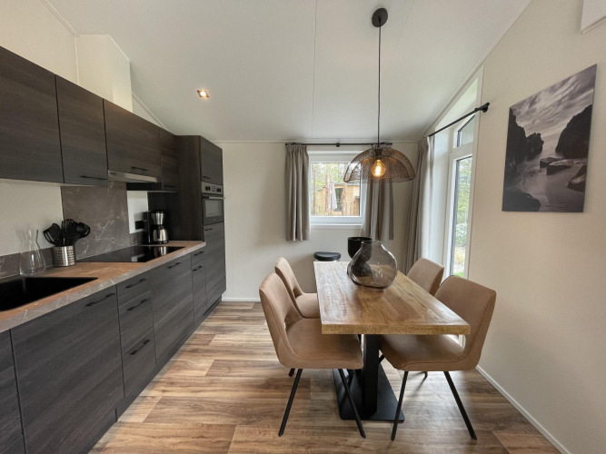 Hackfort 4 es un chalet independiente de una sola planta, adecuado para 4 personas. El chalet tiene una superficie de 50 m2 y está rodeado de terraza y jardín. El chalet tiene una decoración moderna y en el salón te sentirás inmediatamente como en casa. En la encantadora sala de estar, puedes relajarte frente al televisor o disfrutar de las vistas a la terraza y el jardín. La cocina está totalmente equipada, e incluye placa de inducción, lavavajillas, cafetera de filtro, hervidor de agua y microondas combinado. El chalet tiene 2 dormitorios, cada uno con camas individuales con somier. El cuarto de baño tiene ducha, lavabo e inodoro. El chalet se refrigera en verano y se calienta en invierno mediante aparatos de aire acondicionado en el salón y el dormitorio principal. En el exterior, disfruta de su terraza con muebles de jardín y puedes aparcar 1 coche en un aparcamiento cercano.