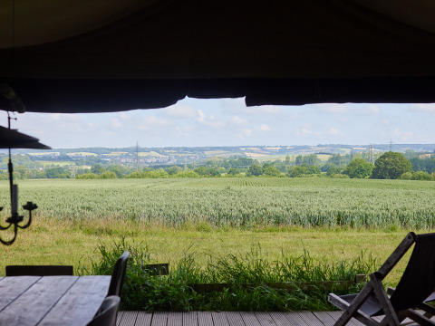 Nada de duchas compartidas, sólo tu propia ducha privada con agua caliente justo al lado de tu tienda. Además, la casa de campaña tiene un inodoro con cisterna de verdad, muy agradable durante tu estancia en la naturaleza.