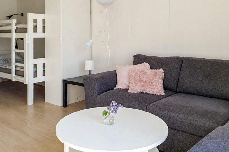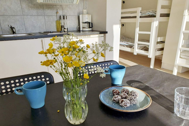 La casa es compacta pero muy bien diseñada, con techos altos y grandes ventanales que dejan entrar muchísima luz natural y la hacen sentirse maravillosamente espaciosa. En el interior encontrarás una acogedora zona de estar con un sofá cama para dos, además de una litera, así que hasta cuatro personas pueden dormir cómodamente. La cocina cuenta con todo lo necesario para preparar comidas sencillas, y afuera hay una barbacoa para largas noches de verano. En la entrada, una terraza de madera con muebles de exterior te invita a relajarte con un café, un libro o una copa de vino.