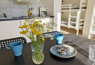 Cada casa tiene su propio baño nuevo con ducha, lavabo e inodoro. En el edificio de servicios compartidos encontrarás duchas y aseos adicionales, además de una lavadora – muy útil para estancias largas o unas vacaciones con niños. Las familias son especialmente bienvenidas: puedes solicitar una cuna y una trona, y se incluyen bicicletas tanto para adultos como para niños en tu estancia.