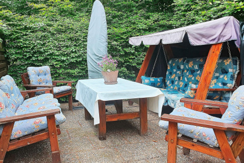 En la misma parcela hay una casa de invitados sencilla pero encantadora con dos camas adicionales – perfecta si viajas con amigos, hijos mayores u otra pareja. Al lado encontrarás espacio de almacenamiento extra para tu equipaje. En el exterior, varias terrazas te invitan a relajarte: siéntate en los muebles de exterior, acuéstate en la hamaca o descansa en las tumbonas junto a la casa de invitados más apartada. En verano, el exuberante jardín cobra vida con arriates de flores en flor, arbustos y árboles alrededor de toda la parcela natural.