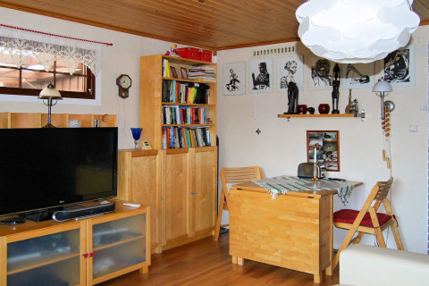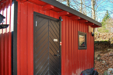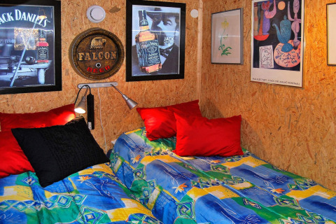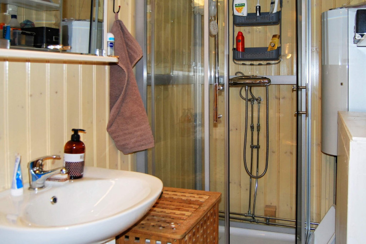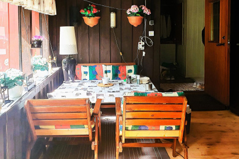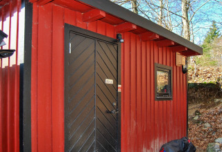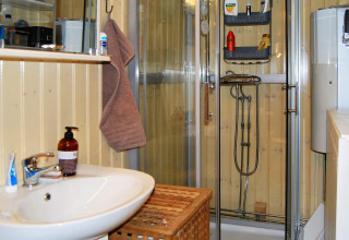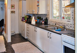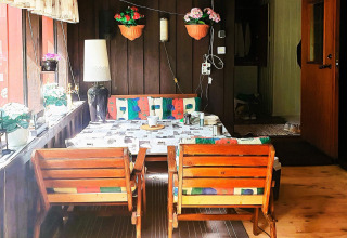 Entras a la cabaña a través de una hermosa terraza acristalada – ideal para tomar tu café de la mañana en los días más frescos. Por dentro, todo está inteligentemente distribuido: un dormitorio con una cómoda cama doble, una cocina bien equipada donde puedes preparar fácilmente tus comidas y un baño con lavadora y secadora – muy útil para estancias largas. En el salón encontrarás un pequeño rincón de comedor, un cómodo sofá, TV y una acogedora estufa de leña que crea un ambiente instantáneo en las noches más frescas.