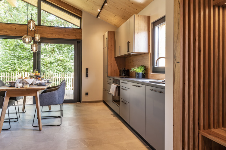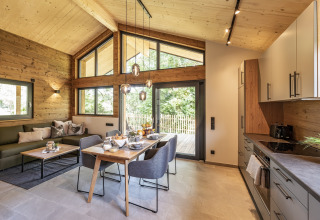 La cuisine moderne, entièrement équipée, rend la préparation des repas en vacances facile et détendue. Préparez votre petit-déjeuner à votre rythme, savourez un déjeuner tranquille à l'intérieur ou terminez la journée avec un dîner fait maison sur la terrasse. À l’extérieur, votre terrasse privée est l’endroit idéal pour un verre de vin, un bon livre, ou simplement profiter du calme environnant.