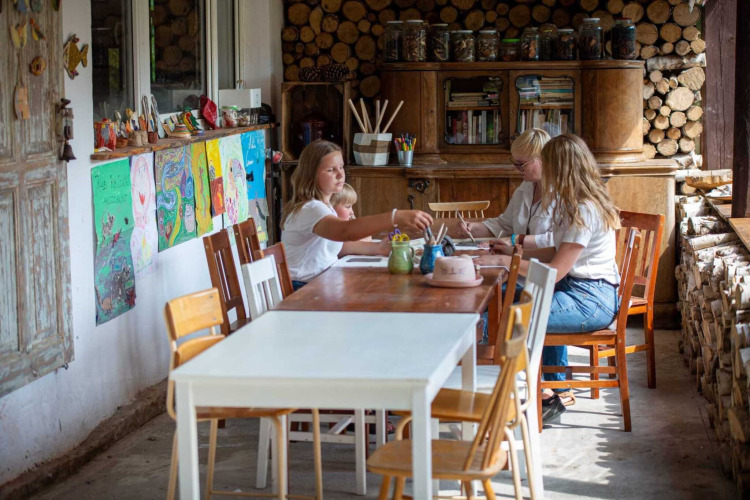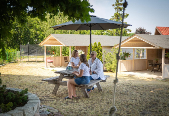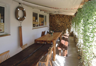 Les maisons de vacances sont situées dans un petit complexe détendu à l'atmosphère conviviale. À l'extérieur, vous trouverez une terrasse ensoleillée où vous pourrez prendre votre petit-déjeuner, lire un livre ou tout simplement profiter du calme et de la tranquillité. Le terrain bien entretenu propose des sièges confortables et un espace feu de camp commun – idéal pour faire griller des marshmallows, discuter jusqu'au soir et observer l'apparition des étoiles.