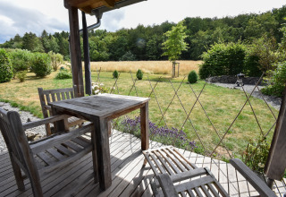 Un des meilleurs endroits de Ferienhaus Magma est la terrasse en bois couverte. Commencez votre journée avec le petit-déjeuner dehors, accédez directement au jardin et imprégnez-vous du calme de la forêt qui vous entoure. Mobilier de jardin et espace barbecue sont prêts pour de longues soirées tranquilles sous les arbres.