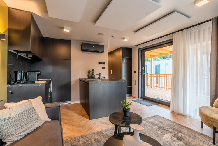 Les mobile homes sont magnifiquement conçus et aménagés. L'aire de jeux au bord du lac est également très bien et nous y sommes allés plusieurs fois par jour.