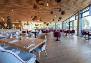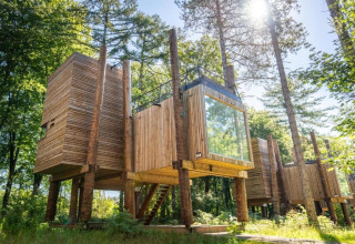 Nous avons eu la chance de séjourner dans un treeloft, qui est très spécial et a vraiment un effet waouh, Il est bien meublé et la terrasse est très belle, Parce que les treelofts sont loin les uns des autres, c'est calme, Pendant notre court séjour, il y avait un peu d'activité à la piscine, mais à l'extérieur c'était calme, A l'extérieur il y a un mini-golf, quelques tables de ping-pong et billard dans une tente séparée, En outre, il y a principalement des véhicules électriques tels que des scooters et des vélos de paddle, Le personnel est très serviable,