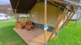 La safaritent est une tente safaritent de luxe adaptée pour un maximum de 6 personnes, une hébergement idéal pour des vacances en famille ou en groupe ! Avec une superficie de 40m2. Dînez tous ensemble à la grande table avec des chaises, ouvrez complètement l'avant de la tente et profitez encore plus de la vue et de l'air frais. Préparez vos repas dans la cuisine complète et détendez-vous à la fin de la journée sur l'un des fauteuils de luxe ou dans l'une des 2 chambres. Dans une chambre, vous trouverez un grand lit double, et dans l'autre, deux lits superposés. Avec une longueur de 2 mètres, les lits conviennent aussi bien aux enfants qu'aux adultes.