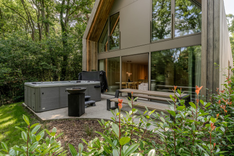 Ce lodge avec jacuzzi est idéal pour des vacances relaxantes en famille ou entre amis. Imagine : après une journée passée à explorer les magnifiques environs, tu reviens dans ton lodge privé, où tu peux faire trempette dans le jacuzzi tout en profitant de la vue imprenable sur la lisière de la forêt.