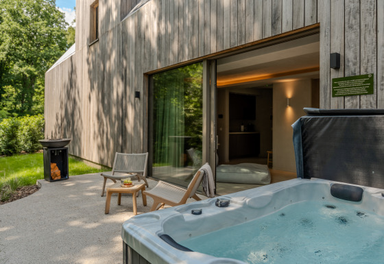 La Wellness Suite est une élégante retraite pour deux, située à l'orée de la forêt dans un cadre paisible. Cette suite située au rez-de-chaussée offre un espace ouvert et aéré avec un luxueux lit king-size et une salle de bain moderne avec des serviettes douces et un sèche-cheveux. Détends-toi sur ta terrasse privée dotée d'un jacuzzi et d'un sauna, tous deux offrant une vue imprenable sur la campagne environnante.