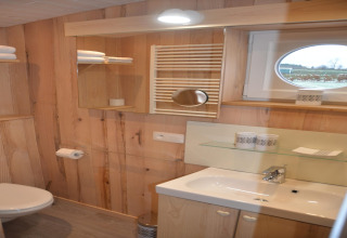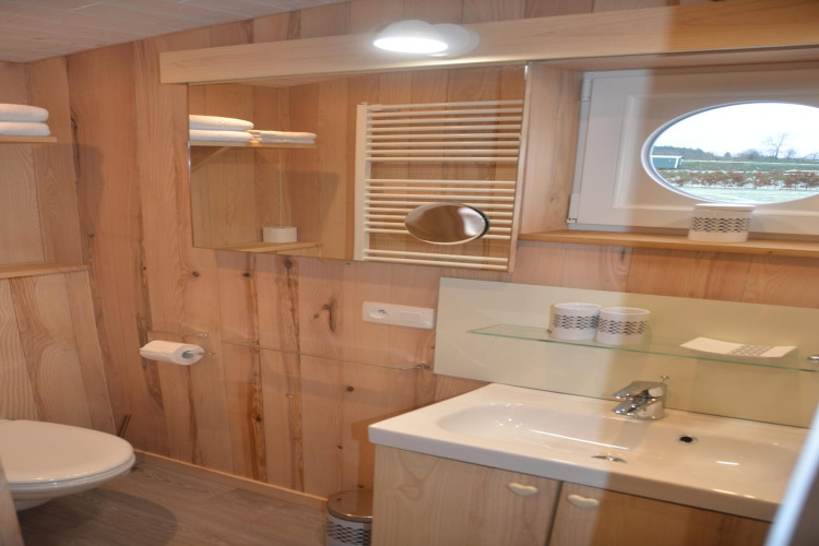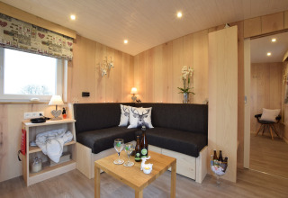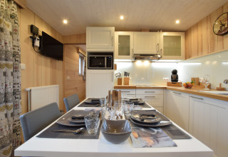 À l’intérieur, la roulotte est chaleureuse et accueillante grâce au chauffage central et à une disposition intelligente. Il y a un espace salon-salle à manger confortable avec TV où vous pourrez vous détendre après une journée dehors, et une cuisine moderne et bien équipée pour préparer vos plats préférés. Avec 2 chambres et 2 salles de bains, c’est une configuration idéale pour une petite famille ou deux couples voyageant ensemble.