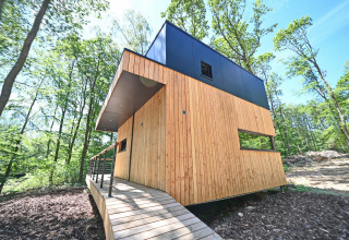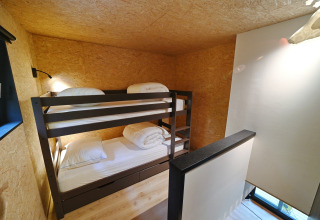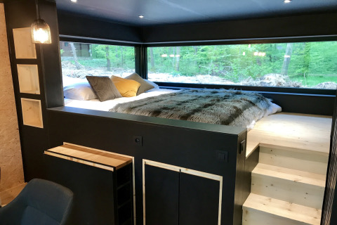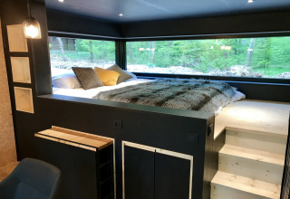 L'éco-lodge est intelligemment conçu, utilisant des matériaux naturels comme une isolation en paille et une pompe à chaleur pour rester confortable toute l'année. À l'intérieur, vous découvrirez des solutions astucieuses et compactes, utilisant chaque recoin de manière optimale. Imaginez une table à manger escamotable pour de longs dîners et des soirées jeux, et un coin salon confortable qui se transforme facilement en un lit king-size quand vient l'heure de dormir. Avec une capacité de 6 personnes, c'est idéal pour un petit groupe ou deux couples qui aiment voyager ensemble.