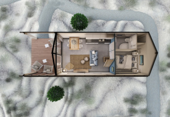 - Espace de vie cosy et ouvert avec patio