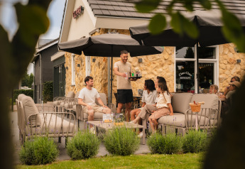 • Piscine extérieure et espace détente au Vakantiepark de Zeeuwse Parel en Zélande, Pays-Bas.