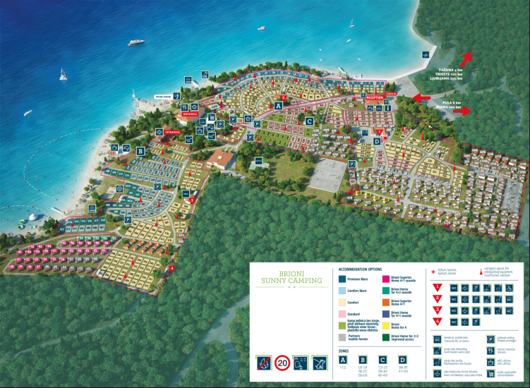 Découvrez l’esprit de la vie en plein air au Camping Brioni, l’escapade idéale pour les familles, les amis et les amateurs d’aventure. Explorez le littoral adriatique préservé et admirez les vues imprenables sur les îles Brijuni. Profitez des journées à la plage, des aventures de plongée et des promenades au coucher du soleil à travers les forêts de pins parfumées. Relevez des défis sportifs sur terre ou sur l’eau, ou détendez-vous tout simplement dans l’ambiance méditerranéenne décontractée. Savourez des saveurs locales dans les restaurants en bord de mer et détendez-vous avec un verre dans un bar de plage. Découvrez la liberté, le plaisir et la beauté naturelle qui font du Camping Brioni l'une des escapades côtières les plus appréciées de Croatie.
