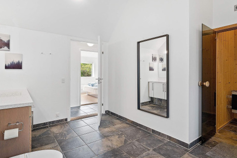 La maison peut accueillir jusqu’à 6 personnes dans trois chambres doubles confortables, plus une mezzanine avec deux lits, idéale pour les enfants. Vous trouverez également un lit bébé et une chaise haute à disposition, pratique si quelqu’un vient avec un petit. Il y a deux salles de bains modernes avec douche et chauffage au sol, ce qui évite les files d’attente. Dans l’une des salles de bains, vous pourrez vous détendre dans votre propre espace bien-être, comprenant un bain à remous et un sauna.