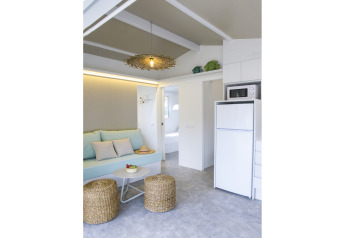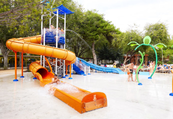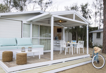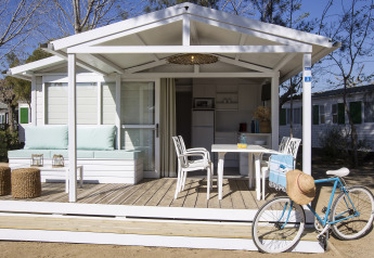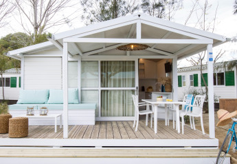 • Parc de vacances avec vélos, supérette et aire de jeux au bord de la mer à TAIGA Delta de l'Ebre, Catalogne.