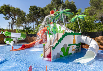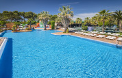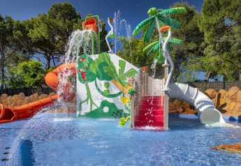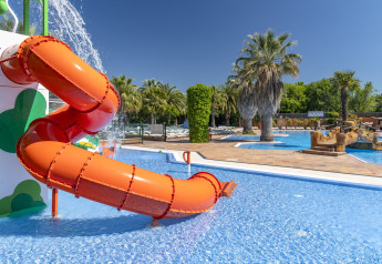 • Piscine du parc de vacances TAIGA Delta de l'Ebre en Catalogne, Espagne, avec des clients profitant du soleil.