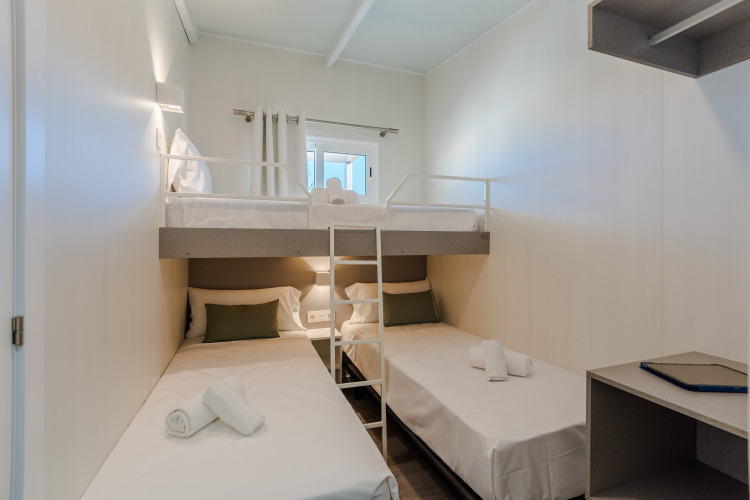 Ces bungalows ont 2 chambres et 2 salles de bains. La chambre principale a un lit double et la deuxième chambre a 3 lits simples. Cette option est donc le choix parfait pour 4 adultes et 1 enfant, 2 adultes et 3 enfants, 5 adultes..... Il y a de la place pour tous les types de familles !