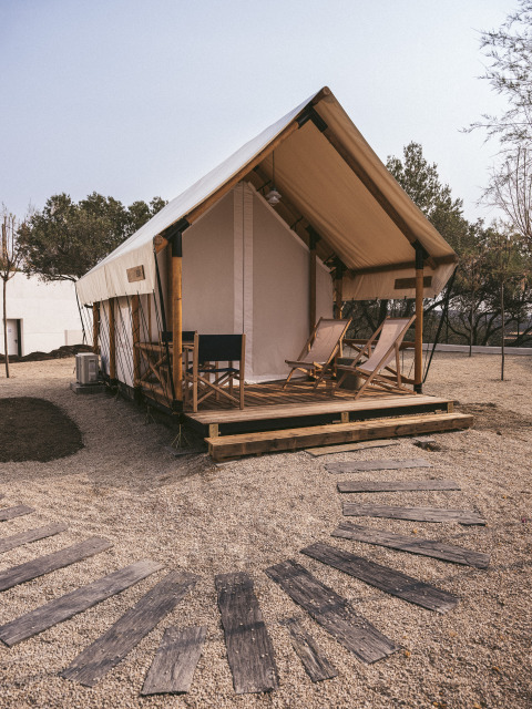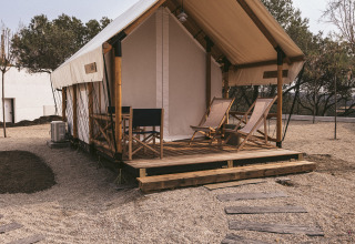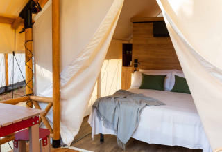 Vous cherchez un hébergement confortable en pleine nature, sans renoncer au luxe ? Cette tente de glamping compacte de 12 m² est spécialement conçue pour les couples souhaitant profiter du calme, du confort et de l'intimité. L'hébergement dispose d'un lit double, de la climatisation et d'une salle de bain privée moderne avec douche.