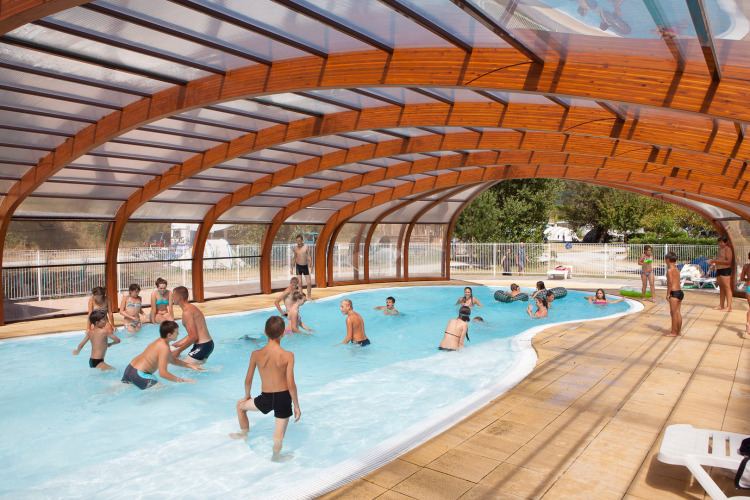 Il y a une piscine couverte et chauffée. Il y a aussi une pataugeoire et tu peux te baigner dans le lac.