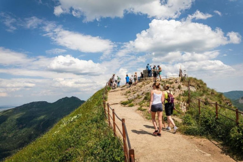 Pour des panoramas à couper le souffle, une excursion vers l’emblématique Puy Mary est vivement recommandée. Ce volcan ancien et éteint est typique du paysage auvergnat et se dresse fièrement à une altitude de 1 748 mètres. Accessible par le plus haut col d’Auvergne, le Pas de Peyrol, il offre de magnifiques possibilités de randonnée à travers les vastes vallées verdoyantes et les pics volcaniques impressionnants du Massif cantalien.