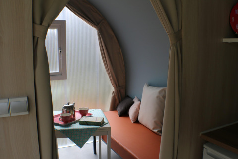 Le ‘Coco’ est un nouveau concept de location, entièrement dans l’esprit du 'glamping' moderne. Convivial, ludique et joliment conçu. Pas ultra-luxueux, mais attractif et abordable. Le Coco Sweet est en fait une version moderne de la populaire cabane de randonneur. Le Coco Sweet pour 4 personnes dispose d’un espace central avec coin salon, une table avec 4 tabourets, un réfrigérateur, une gazinière 2 feux, un lit double et 2 lits simples. Oreillers fournis.