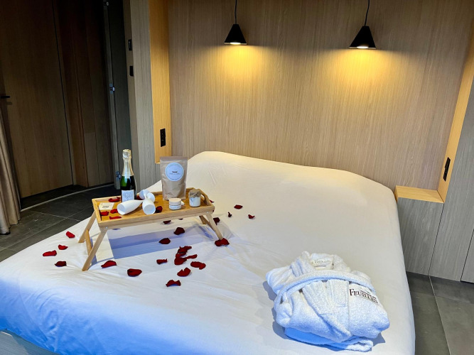 Au cœur de vastes paysages verdoyants et de plans d’eau apaisants, vous trouverez Domaine des Feuilles, un lieu où détente et immersion dans la nature se conjuguent parfaitement. Le domaine s'étend sur des dizaines d'hectares, où le soin et le respect de l'environnement sont essentiels. Découvrez la piscine lagon, l’offre bien-être ainsi que la situation unique des cabanes en bois situées sur ou au bord de l’eau. Naviguez avec votre propre barque, partez à vélo ou profitez d’une journée de pêche en toute tranquillité. Pour ceux qui souhaitent quelque chose de spécial, des formules gastronomiques et romantiques sont également disponibles pour rendre votre séjour encore plus exceptionnel. Ici, vous rechargez vos batteries, que ce soit en couple, en famille ou entre amis, loin de l’agitation du quotidien.