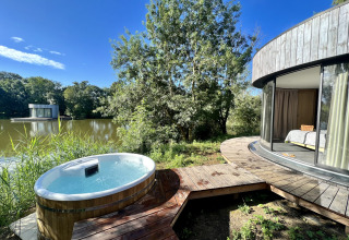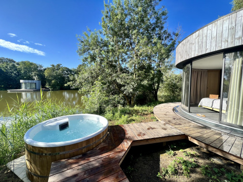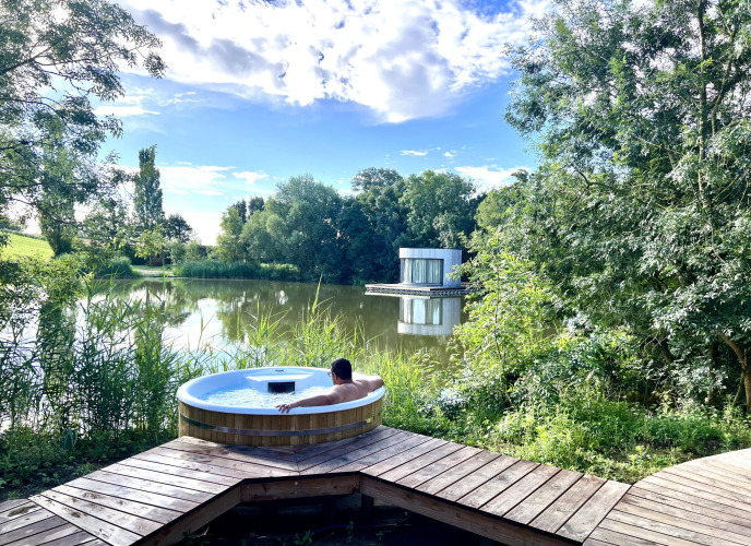 Une cabane ronde avec jacuzzi et sauna pour 2 personnes où l’exceptionnel rencontre le luxe. La cabane bénéficie d’un emplacement unique sur l’île, accessible par une immense passerelle flottante de 16 mètres de long. Ouvrez les grandes baies vitrées incurvées de la cabane pour relier l’intérieur à l’extérieur et vivre une expérience unique. Vous renouerez assurément pleinement avec la nature, tout en profitant d’une vue imprenable sur tout l’étang.