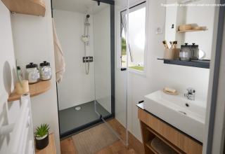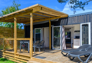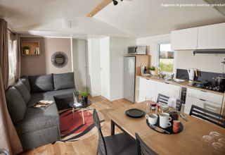 Pour un séjour relaxant à Cap Finistère, le Homeflower Premium de 35m² est un lieu idéal. Pratique et confortable, avec tous les avantages de la gamme supérieure à portée de main. Pensez à une grande terrasse semi-couverte, un salon lumineux avec télévision, et une cuisine entièrement équipée comprenant notamment un lave-vaisselle.