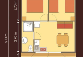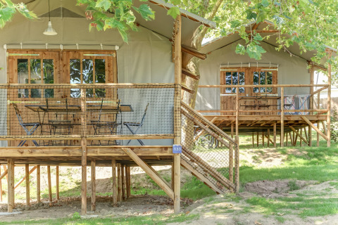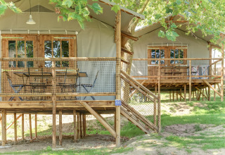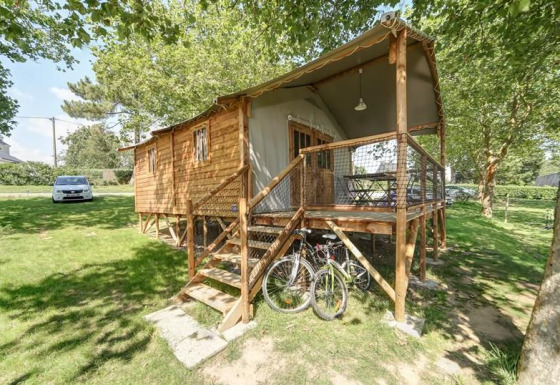 Entrez dans un lodge en bois chaleureux, perché sur pilotis de 38 m², au cœur de la verdure sur la presqu'île de Conleau à Vannes. Cet hébergement surélevé est conçu pour quatre personnes et allie vie en plein air et confort. Deux chambres – l'une avec un lit double, l'autre avec deux lits simples – offrent une disposition idéale pour les familles ou les amis. À l'intérieur, vous trouverez un séjour cosy, une salle de bain fonctionnelle et des sanitaires séparés. À l’extérieur, la terrasse couverte vous invite à prendre le petit-déjeuner parmi les arbres ou à prolonger les longues soirées d’été. Grâce à l’aménagement sans voiture de cette partie du parc, la tranquillité règne partout. Les lodges se trouvent dans une zone piétonne avec un parking à proximité. Idéal pour une expérience de glamping détendue et naturelle.