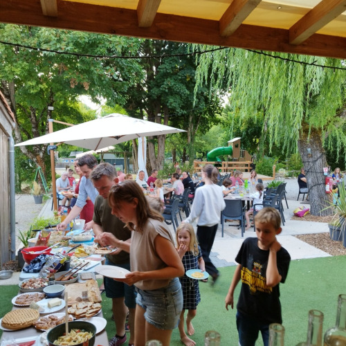 La Dordogne est reconnue comme un paradis culinaire et se trouve à deux pas de Camping des Tourbières. Dans les nombreux restaurants locaux et bistrots chaleureux, vous dégusterez des plats traditionnels à base de canard, de poulet, de truffes et de fromages artisanaux. Flânez sur les marchés pittoresques de Brantôme ou de Villebois-Lavalette et remplissez votre panier de pain croustillant, d’olives, de vins locaux et de pâtés faits maison. Visitez l’un des petits vignerons de la région pour une visite guidée et une dégustation de vin avec vue sur les vignobles. Ou composez un pique-nique et trouvez un coin dans la nature – parfait pour un après-midi de détente en famille. Ici, vous profitez des saveurs authentiques de la France, dans le calme et la simplicité.