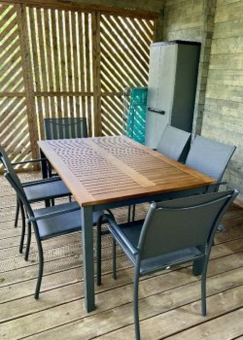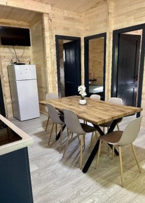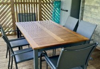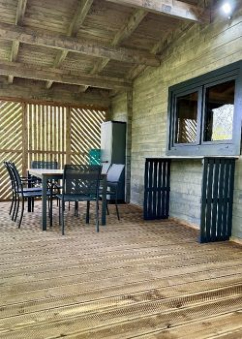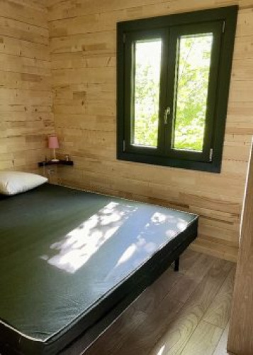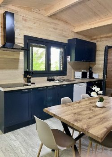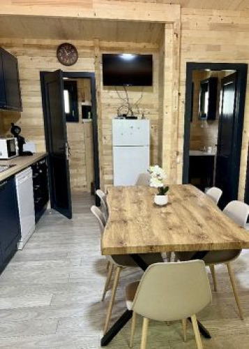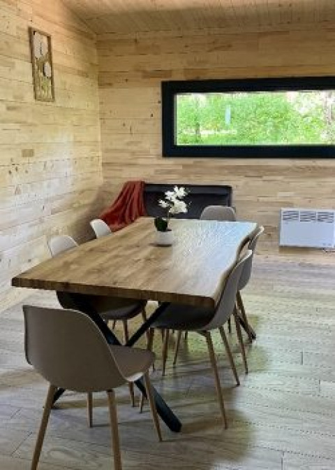 Au cœur de la forêt se trouve le chalet en bois + climatisation. Un hébergement idéal pour une famille de cinq personnes.