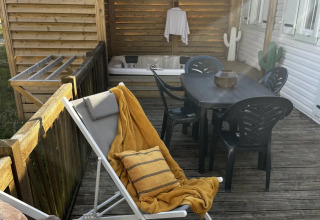 - Terrasse privée semi-couverte avec mobilier de jardin et jacuzzi