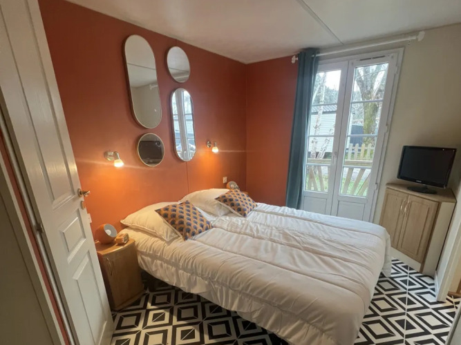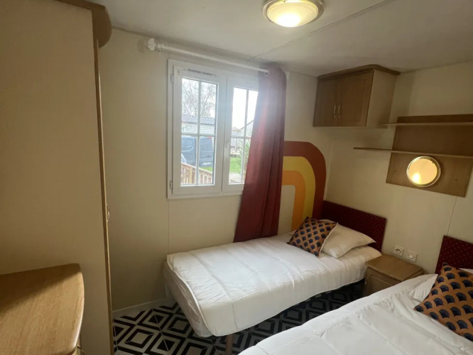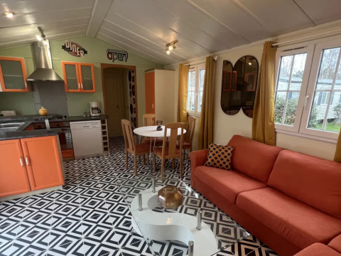 La Mobile Home Premium Spa est située dans un emplacement ombragé et offre confort dans un environnement naturel. L’hébergement est adapté pour quatre personnes. À l'intérieur, vous trouverez un espace de vie convivial avec un grand coin salon, un coin repas et une cuisine ouverte. La cuisine est équipée d’eau chaude et froide, d’un évier, d’un réfrigérateur, d’un congélateur, d’un four, d’un micro-ondes, d’une plaque de cuisson, d’une machine Senseo et d’un lave-vaisselle. Il y a deux chambres : une avec un lit double et une avec deux lits simples. La salle de bain dispose d'une douche, d'un lavabo et de toilettes.