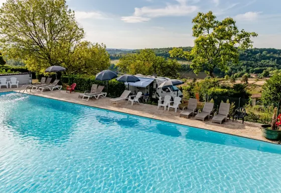 Camping Les Terrasses de Dordogne est un camping en terrasses spacieux situé en pleine nature dans la Dordogne, avec une superbe vue panoramique sur la vallée. Ici, vous profitez du calme, de l’espace et du charme français, combinés à d’agréables équipements tels qu’une piscine extérieure avec toboggan, une piscine couverte et un restaurant avec terrasse. Séjournez dans une tente safari de luxe ou une tente lodge avec salle de bain privée et découvrez les environs variés pleins de châteaux, grottes et rivières. Que vous veniez pour vous détendre ou partir à l’aventure, toute la famille y passera des vacances inoubliables.