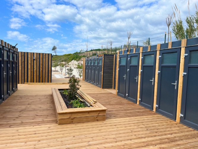 La stacaravan dispose de trois chambres séparées. Une chambre est équipée d’un lit double de 140 x 190 cm. La deuxième chambre comprend deux lits simples de 80 x 190 cm. La troisième chambre dispose d’un lit superposé avec deux lits simples de 80 x 190 cm.