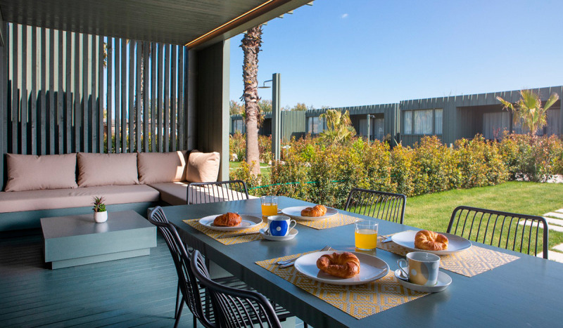 Détendez-vous dans le Bungalow E-Devesa et profitez d'un confort maximal en bord de mer, à proximité de l'école de kitesurf. Construit de manière écologique et durable avec des panneaux photovoltaïques et une borne de recharge pour voiture électrique. D'une superficie de 77 m², les bungalows disposent d'une chambre double et d'une chambre avec des lits superposés et un lit simple, toutes deux dotées d'une salle de bains complète. Le salon est équipé d'une télévision par satellite, d'une plaque de cuisson à induction, d'un lave-vaisselle, d'un micro-ondes et d'une machine Nespresso. Profitez du jardin et de la terrasse privés ou rafraîchissez-vous dans la piscine commune au cœur d'E-Devesa.