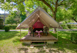 Vivez des vacances glamping inoubliables dans la spacieuse Canada Tent, idéale pour les familles ou les groupes d'amis. Profitez des excellentes installations telles qu'une grande piscine, une aire de jeux pour les plus petits et divers sports et jeux. Explorez les magnifiques environs avec des villes médiévales, des châteaux, des jardins et des activités de plein air passionnantes comme le canoë, l'escalade et la montgolfière.