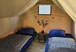 Au camping Neumühle, deux petites mais charmantes tentes de safari vous attendent, offrant une expérience unique de la nature avec une vue imprenable. Les tentes sont équipées de deux lits simples, d'un petit réfrigérateur et d'une prise de courant, ce qui vous donne tout ce dont vous avez besoin pour un séjour relaxant. Deux chaises et une table vous invitent à profiter de la vue et à apprécier pleinement la tranquillité des environs.