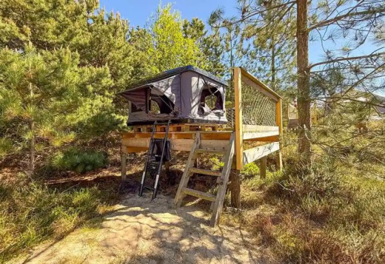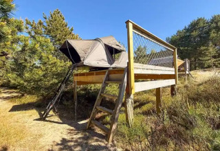 Bienvenue au Dachzelt Dorf Amrum : ici, l'air frais de la mer du Nord, le paysage de dunes et la sensation particulière de dormir en plein air se fondent en une expérience inoubliable. Les tentes confortables sur le toit offrent de l'espace pour 2 à 4 personnes, ce qui les rend parfaites pour les couples, les familles ou les petits groupes. Pour ceux qui ne veulent pas laisser leur chien à la maison : une plate-forme séparée est disponible dans chaque village pour les propriétaires de chiens.