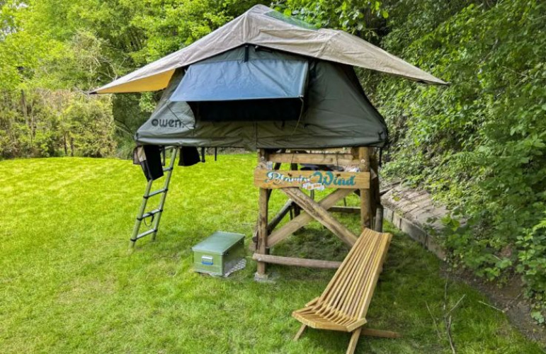 "La réponse est peut-être que vous devriez passer la nuit dans cette tente sur le toit, sur cette plate-forme ? Laissez-vous bercer par le son des carillons des années 1970 et détendez-vous à l'ombre de la plate-forme en hommage à Bob Dylan. La tente sur le toit se trouve au sommet d'un refuge de chasse reconverti. Idéale pour ceux qui préfèrent rester un peu plus près du sol.