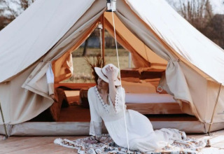 Devant la tente, vous trouverez des bancs et un barbecue, idéal pour des soirées de détente en plein air. Les installations sanitaires avec douche et toilettes se trouvent à environ 80 mètres.
