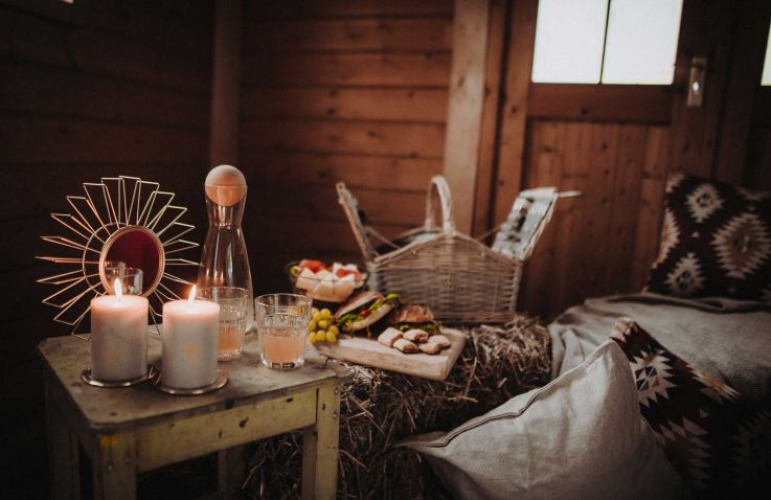À l'intérieur, vous trouverez un généreux lit de 2 × 2 mètres, des couvertures chaudes et un coin salon confortable où vous pourrez vous asseoir confortablement même lorsqu'il pleut. Par temps chaud, les tentes peuvent être ouvertes sur tout leur pourtour, tandis qu'une moustiquaire à 360 degrés assure l'aération et la protection contre les insectes.