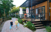 Il y a un restaurant, un bar et une pizzeria sur la glamping.