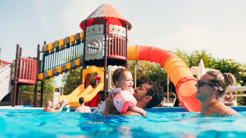 Dans le parc, tu trouveras piscine extérieure, pataugeoire et lac où se baigner. Un toboggan aquatique est disponible pour plus de plaisir.
