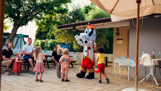 Les chiens sont les bienvenus. Choisissez un hébergement adapté et gardez-le en laisse dans le resort.