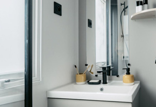 Erg mooie Glamping! Wij verbleven in een van de oudere modellen stacaravans maar alles was goed en netjes. Er staan veel nieuwe moderne caravans op de Glamping Leuk zwembad, al zouden de sproeiers wel af en toe uit mogen! Ze geven veel lawaai. De Glamping is niet zo groot, maar dat is juist fijn. Restaurant op de camping is goed. Erg sfeervol ingericht! Personeel is vriendelijk. Aantal leden van de animatie is Nederlands . Er is een tennis baan/ voetbalveld met tribune. Kortom genoeg reden om eens te bezoeken!