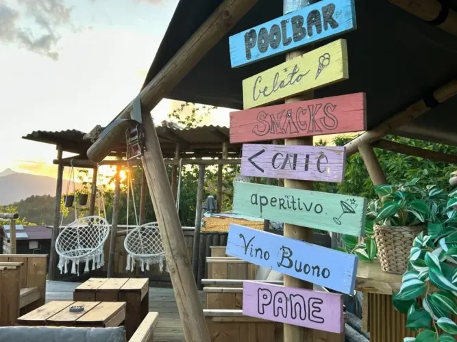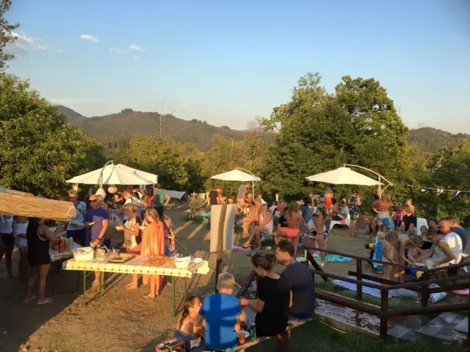 Découvrez le camping rustique à Pian d’Amora, un petit camping en terrasses situé à 600 mètres d'altitude dans le nord de la Toscane. Dans ce camping, vous profitez de la nature, de la tranquillité et de l’espace entre collines et montagnes. Le camping est réparti sur plusieurs terrasses, ce qui crée des différences de hauteur et de magnifiques panoramas. En haut, vous trouverez la réception, le pool-bar et la piscine avec vue sur les montagnes et les superbes couchers de soleil. Détendez-vous et ressourcez-vous dans ce camping plein de charme.